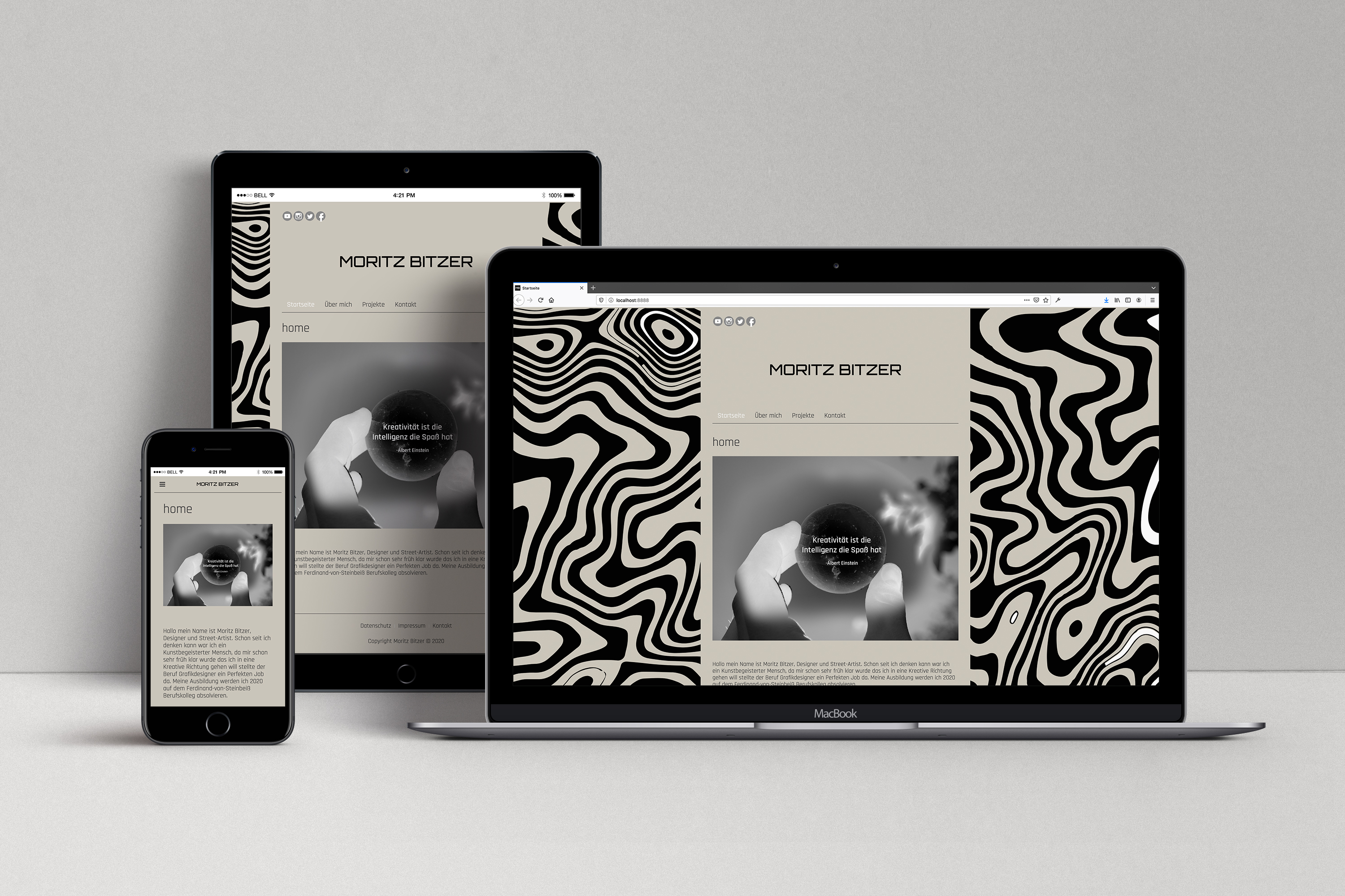 Erstellung einer responsiven Portfolio-Website mit einem Content-Management-System (CMS) unter dem Thema "Grafik-Design meets Mediengestaltung". Das Projekt beinhaltete den Aufbau, die Gestaltung und die Programmierung der Website und diente als Gelegenheit zum Wissensaustausch und Kompetenztransfer.